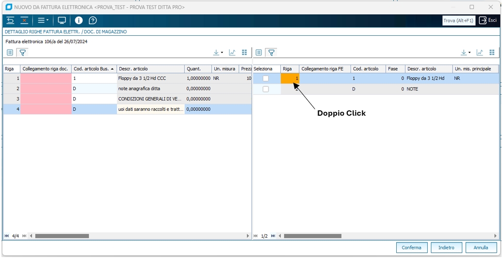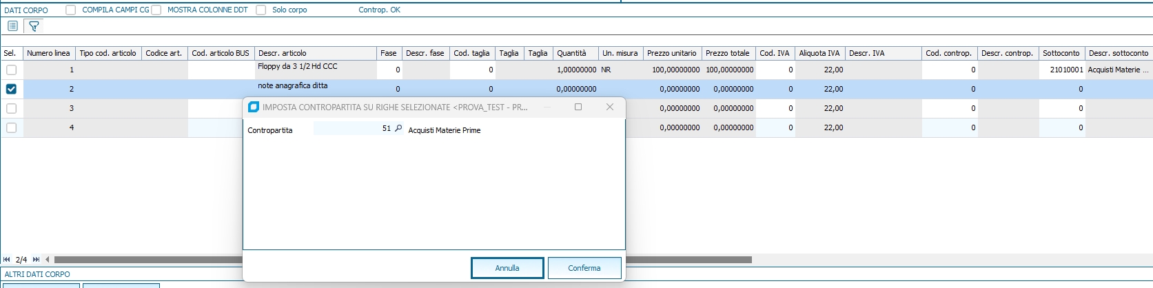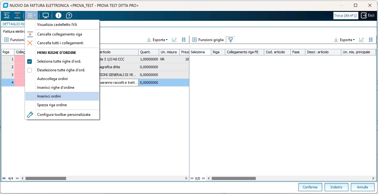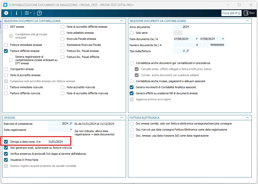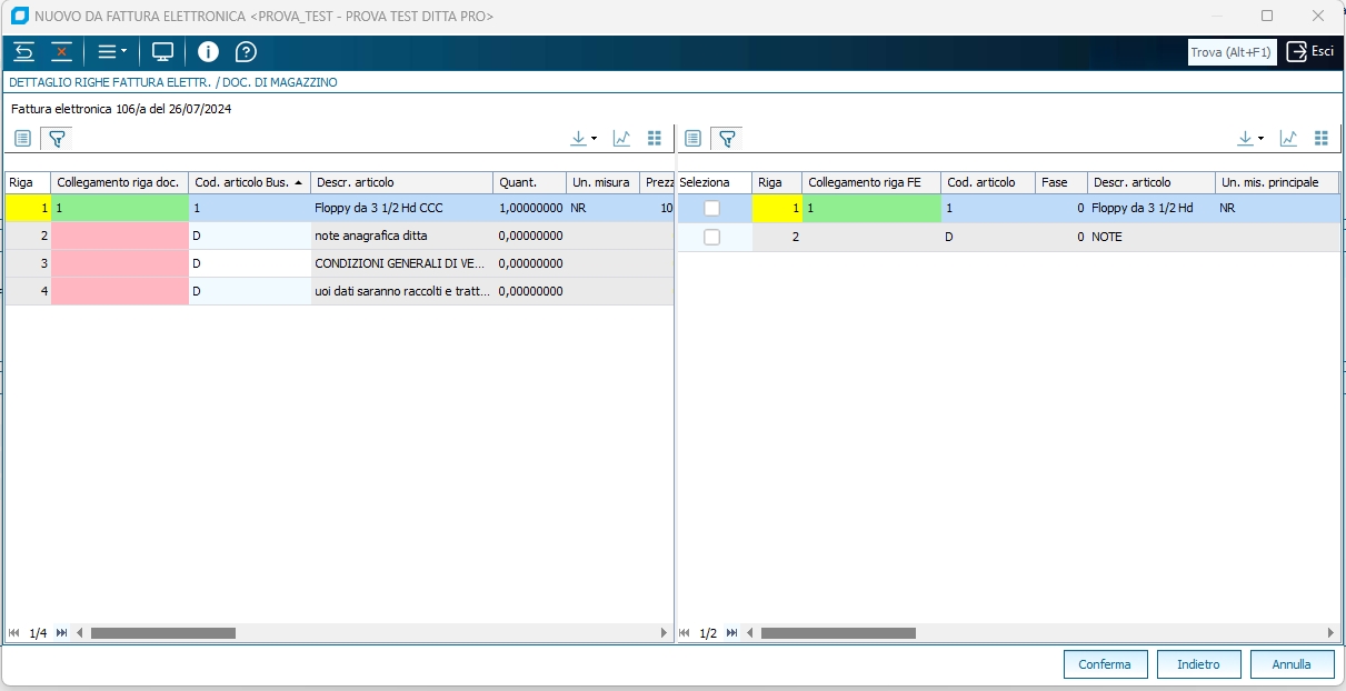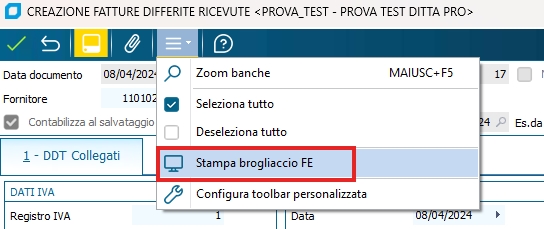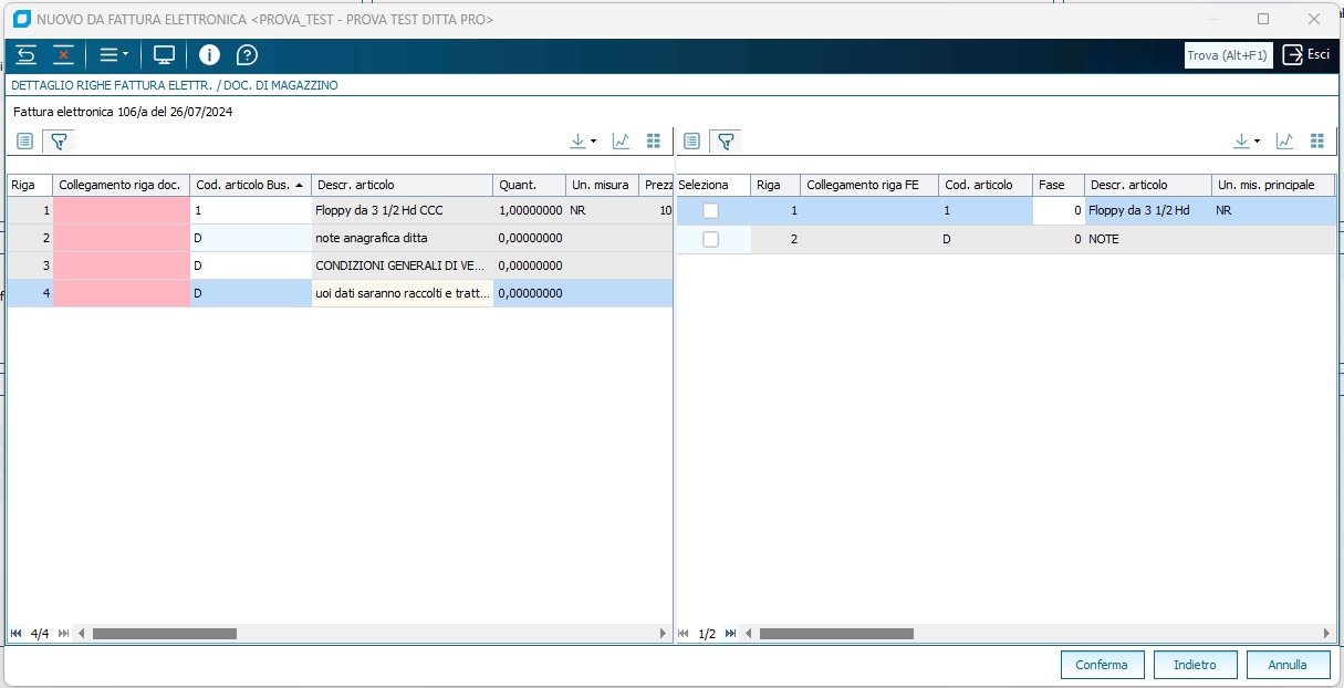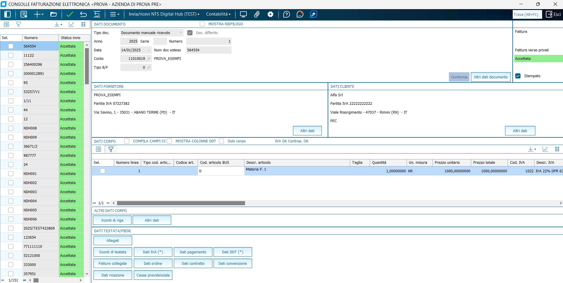 N.B fare attenzione a compilare il campo "partita documento ricevuto" nel piede del documento altrimenti la fattura non verrà estratta.