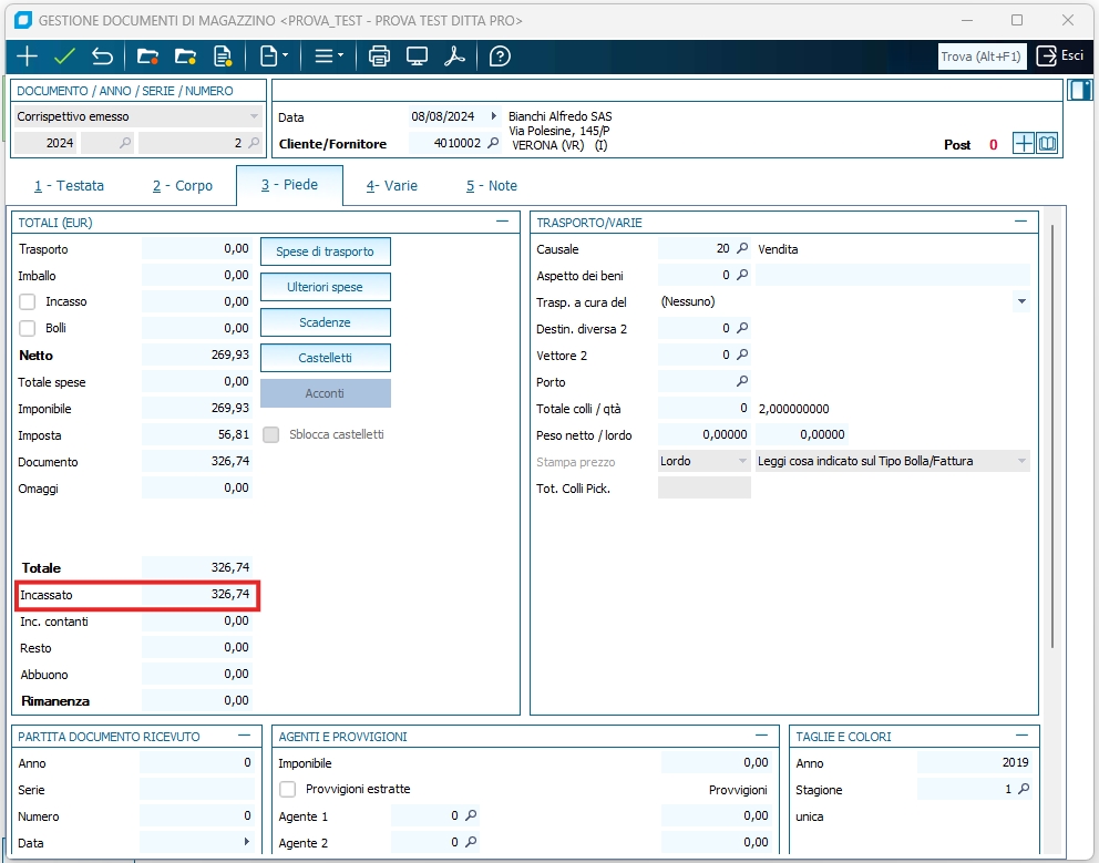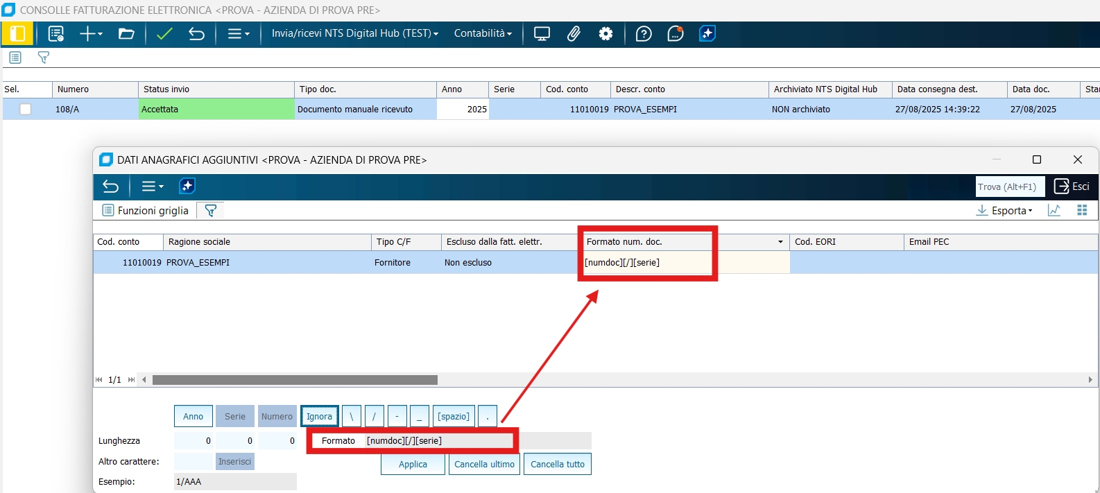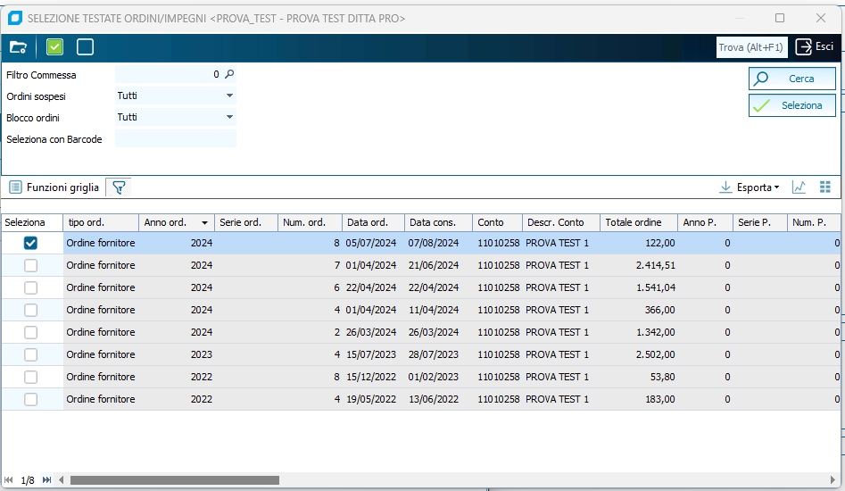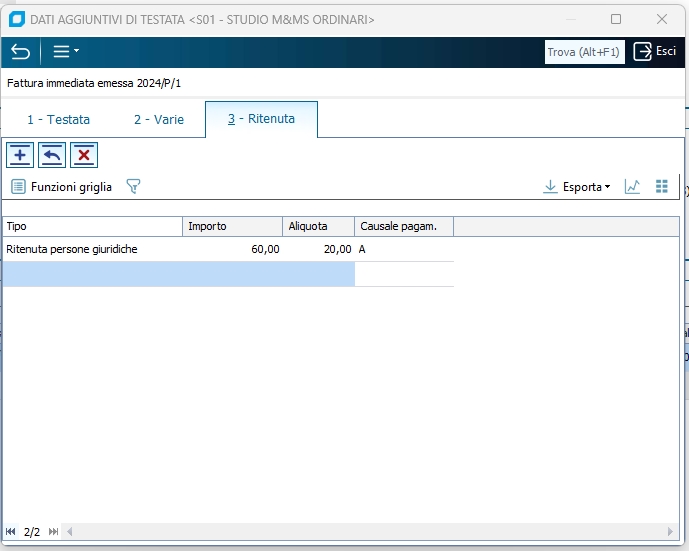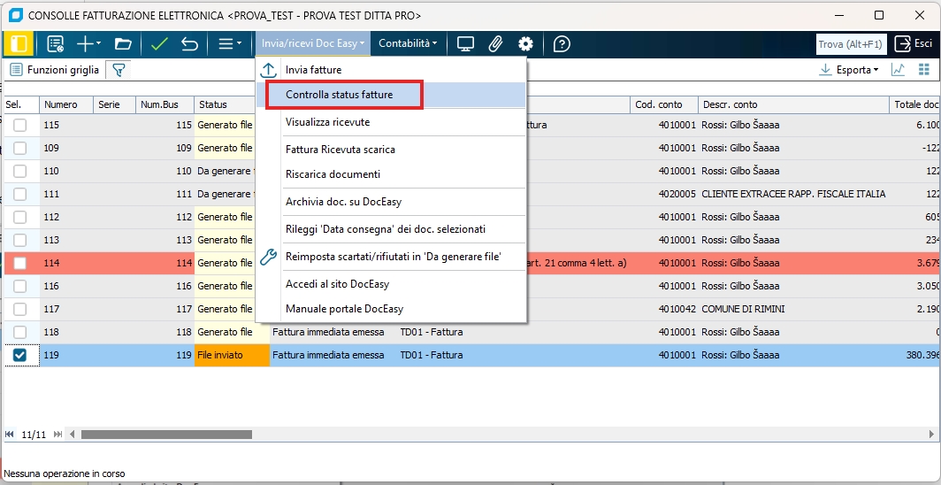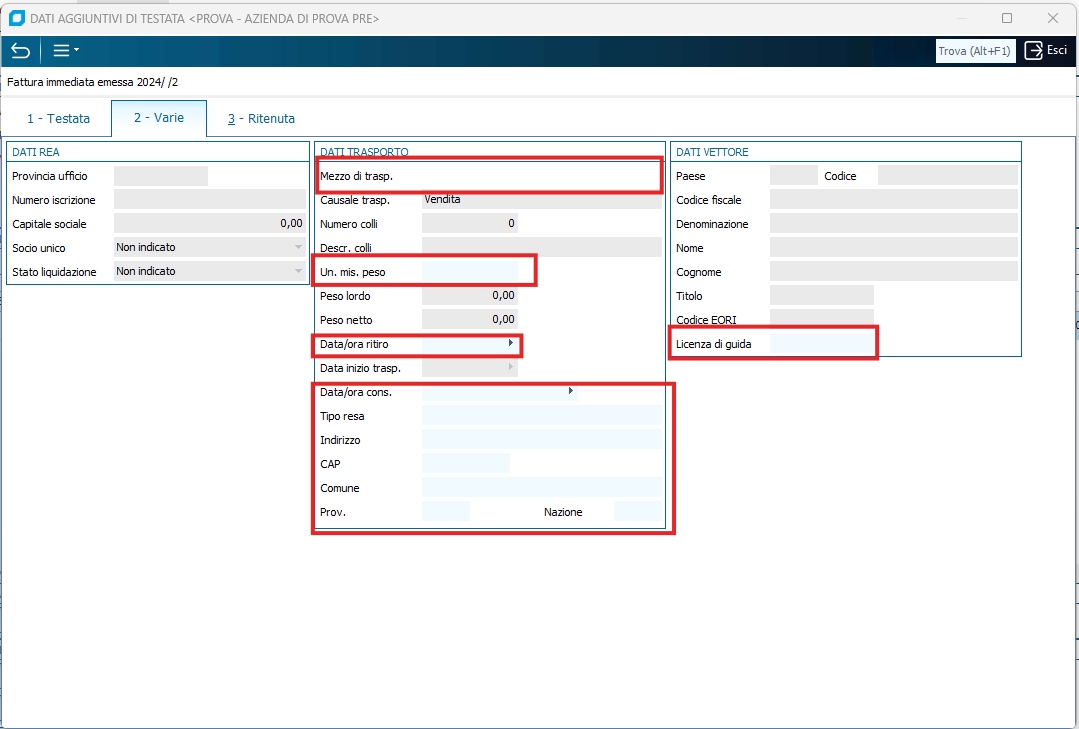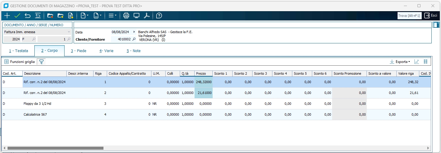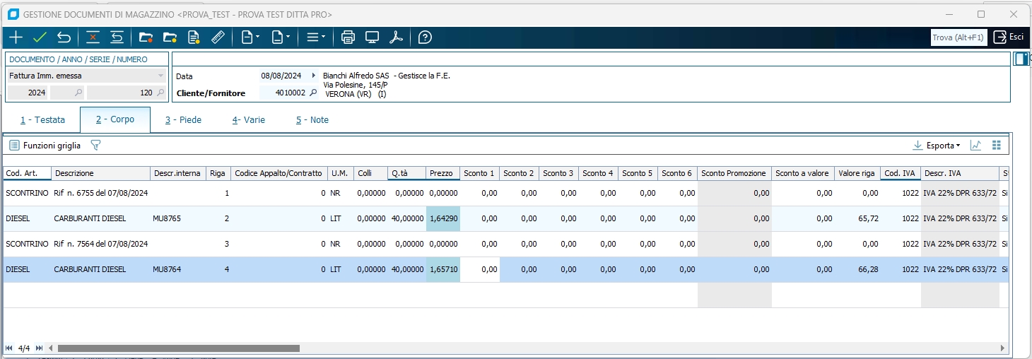 N.B fare attenzione a compilare il campo "partita documento ricevuto" nel piede del documento altrimenti la fattura non verrà estratta.