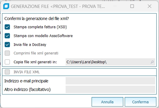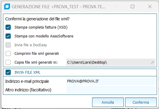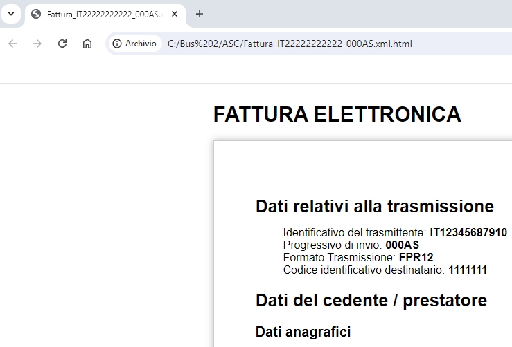 Le fatture elettroniche generate (i files .xml) saranno salvate nella dir locale di business in AscDir (per non confondersi con i files .xml buoni relativi a doc emessi o scaricati da SdI)