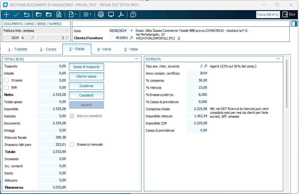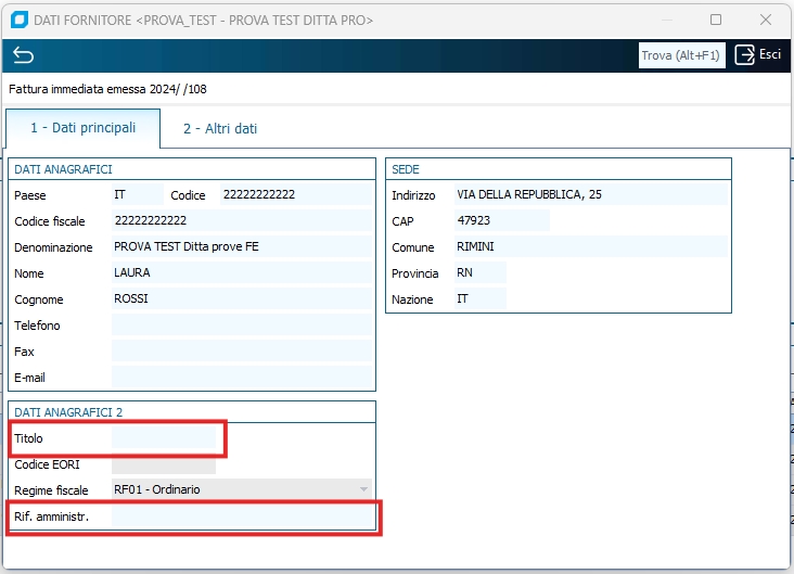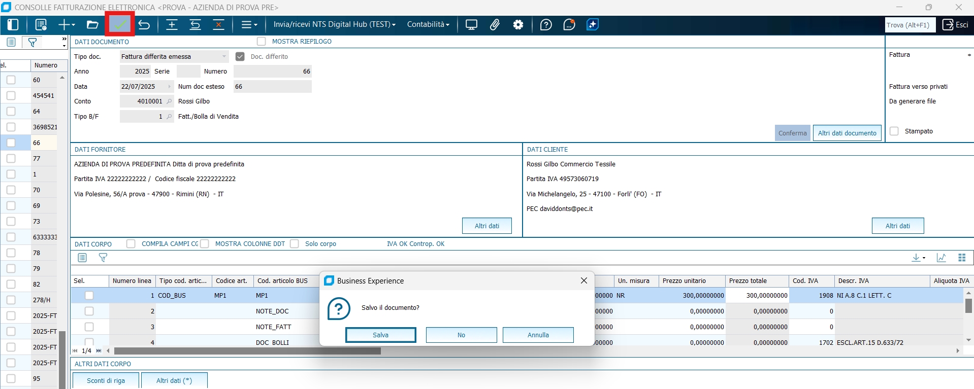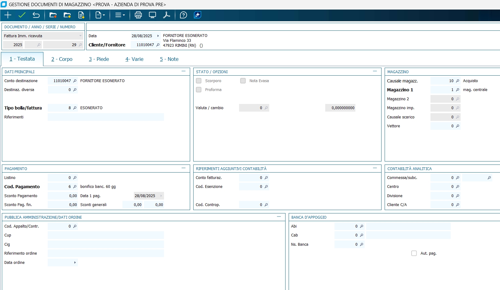 Così facendo nella sezione "Dati Fornitore" verranno riportati i dati del fornitore esonerato mentre nei dati cliente, i dati della ditta.