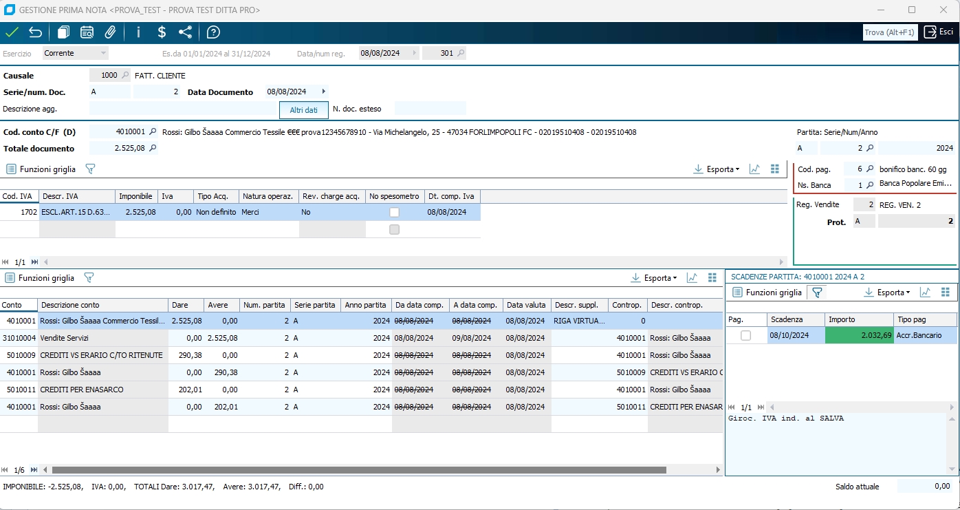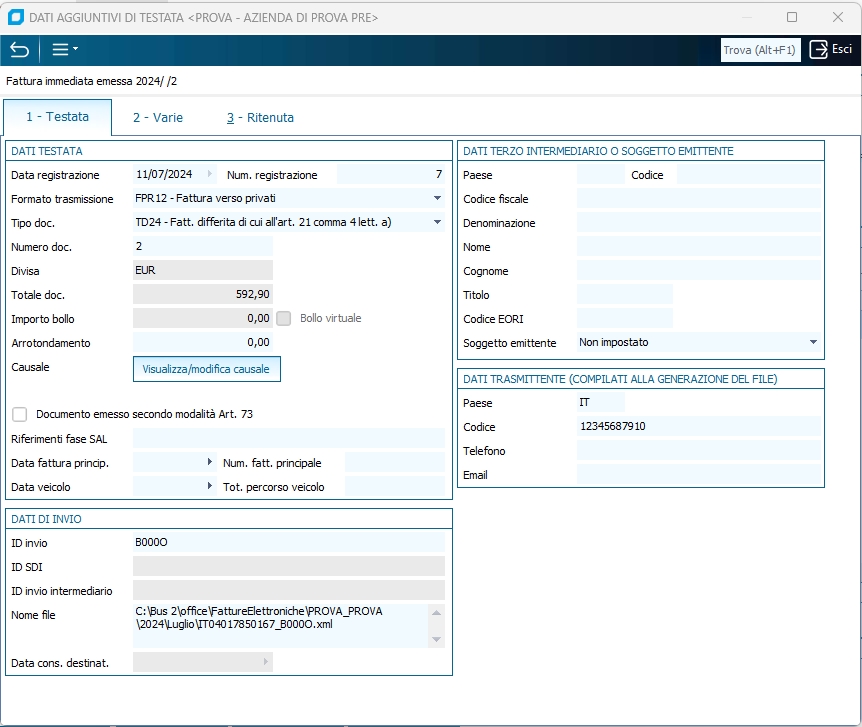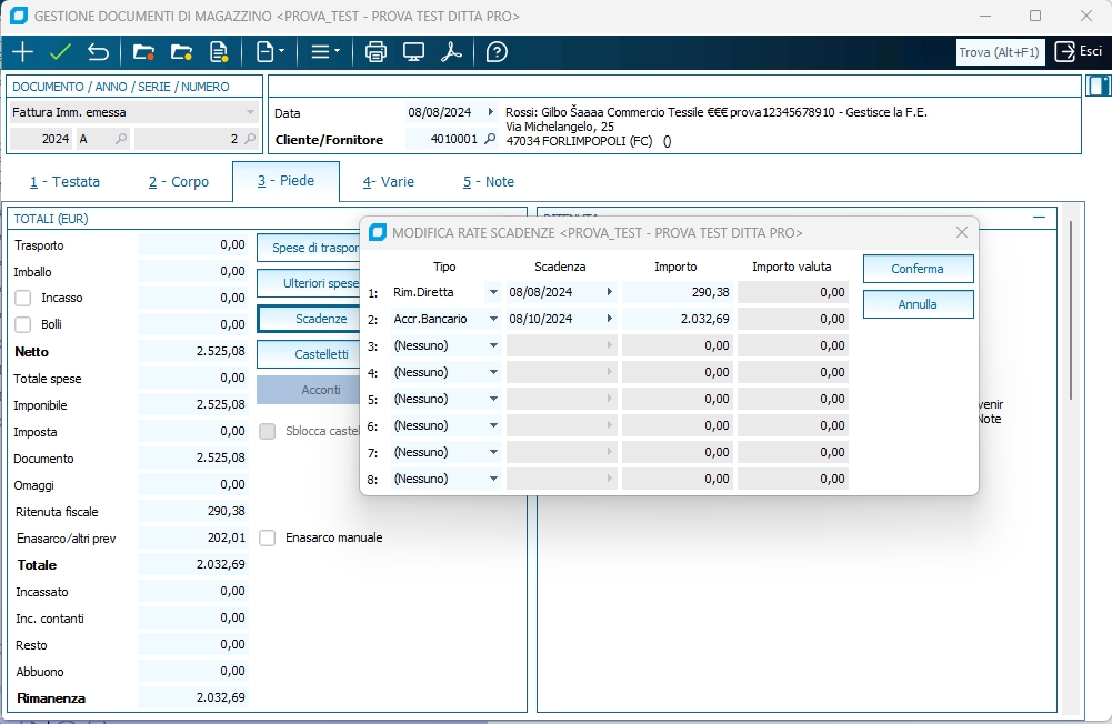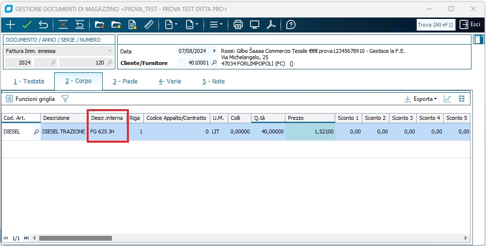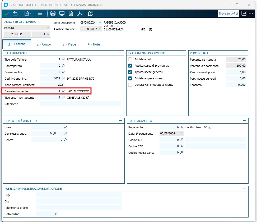 Così facendo nella sezione "Dati Fornitore" verranno riportati i dati del fornitore esonerato mentre nei dati cliente, i dati della ditta.