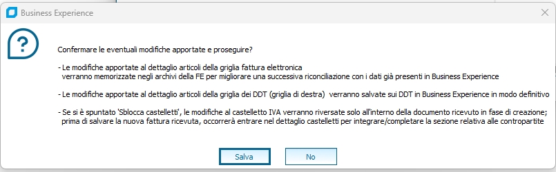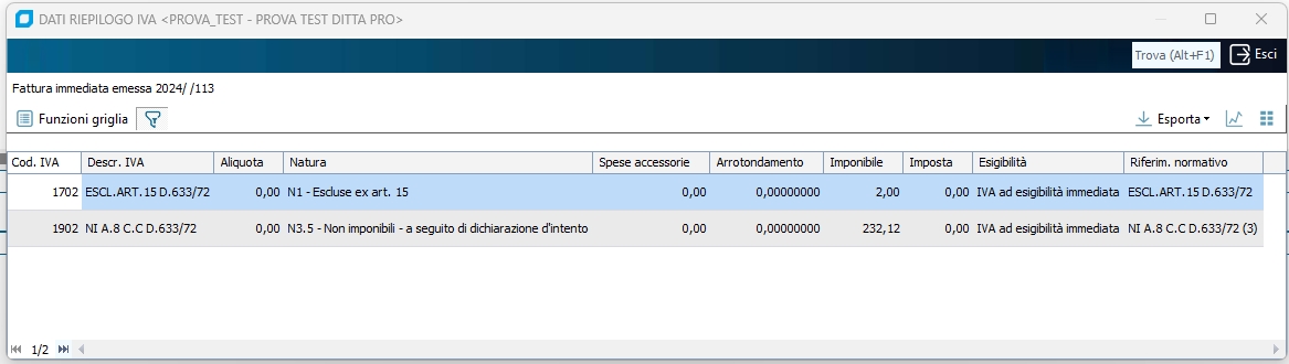 Il codice iva/aliquota e determinazione del campo natura (N1, N2, ...) verranno presi quelli contenuti nel documento ricevuto da magazzino e calcolati come per l'estrazione dati delle fatture emesse
