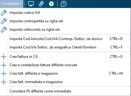 Funzione di menu strumenti->rielabora doc. selezionati: non può rielaborare le fatture/note accredito immediate ricevute: occorrerà cancellare e riestrarre la fattura