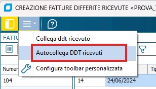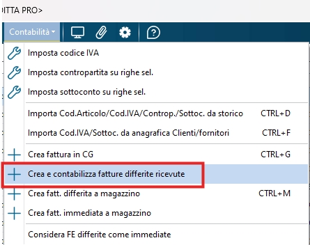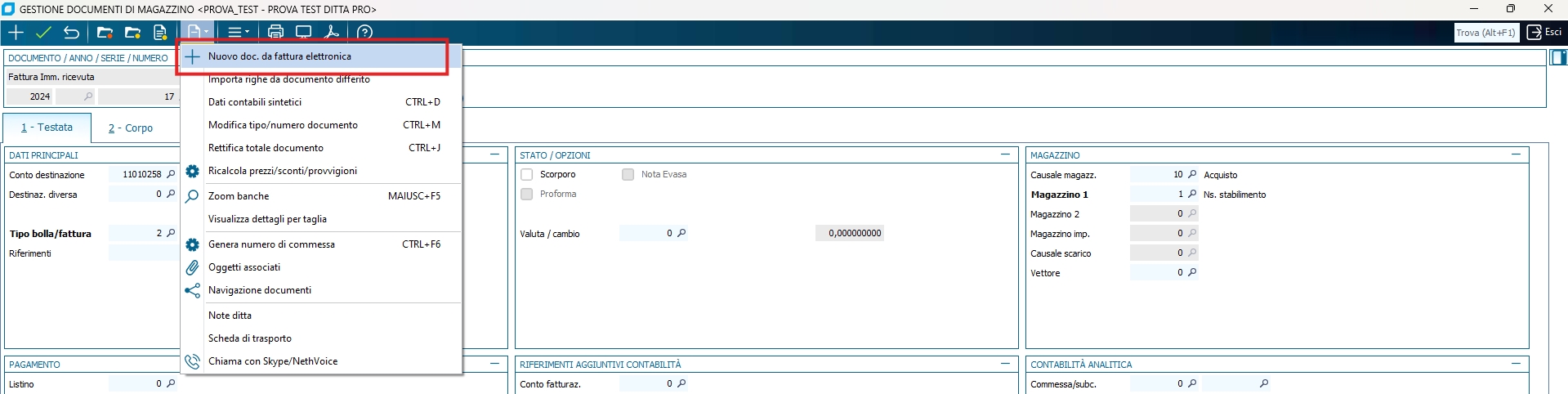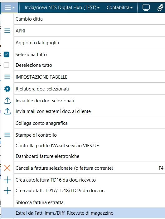 Creata una nuova voce di menu Strumenti "estrai da fatt. imm Ricevuta di magazzino