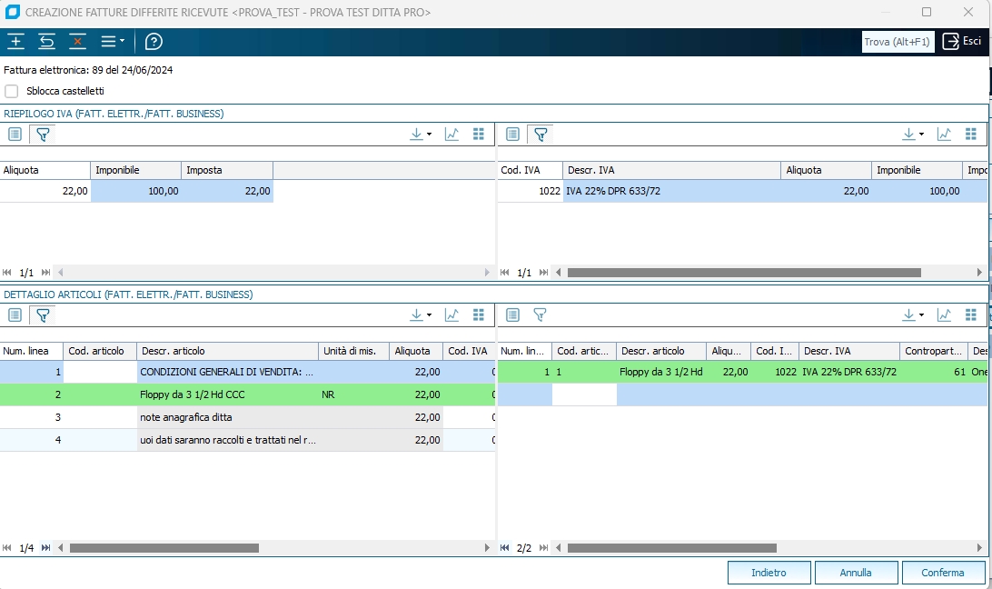 In particolare, la corretta codifica della tabella codici IVA serve per indicare correttamente i dati di dettaglio e di riepilogo dei prodotti\servizi venduti quali l'aliquota IVA e la natura IVA.