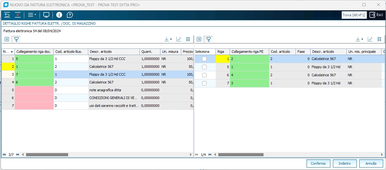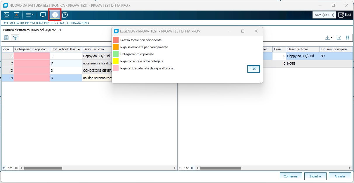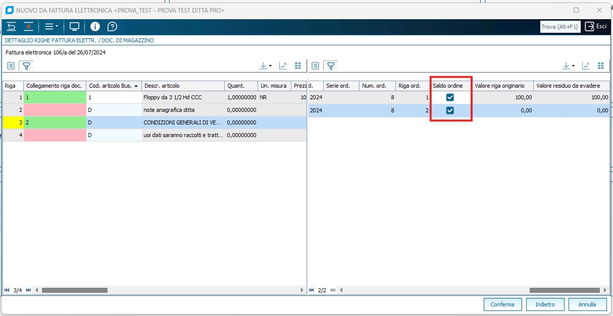 Se modifico invece, evidenzia la riga in rosso come normale procedura se doc di magazzino modificato dopo l'estrazione dei dati