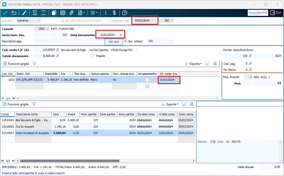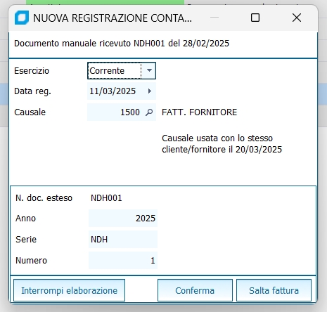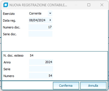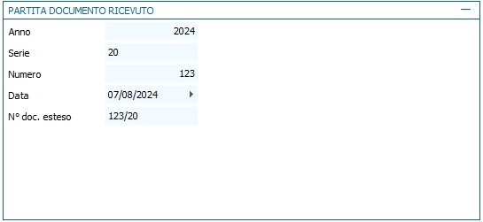 Numero/serie e data documento saranno del documento ricevuto saranno anno, serie e numero e data partita.