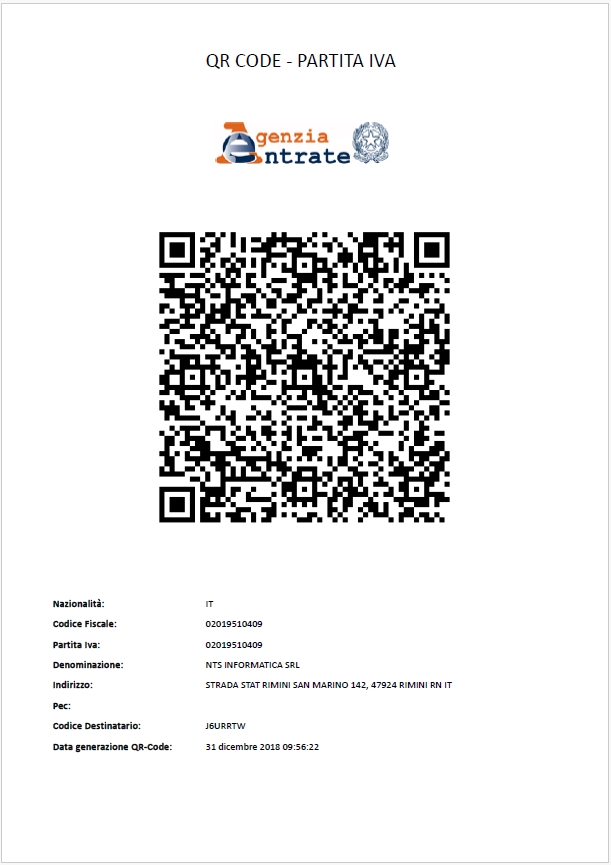 E' l'indirizzo di posta elettronica certificata per i soggetti che hanno scelto di farsi recapitare le fatture elettroniche tramite il canale PEC.