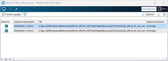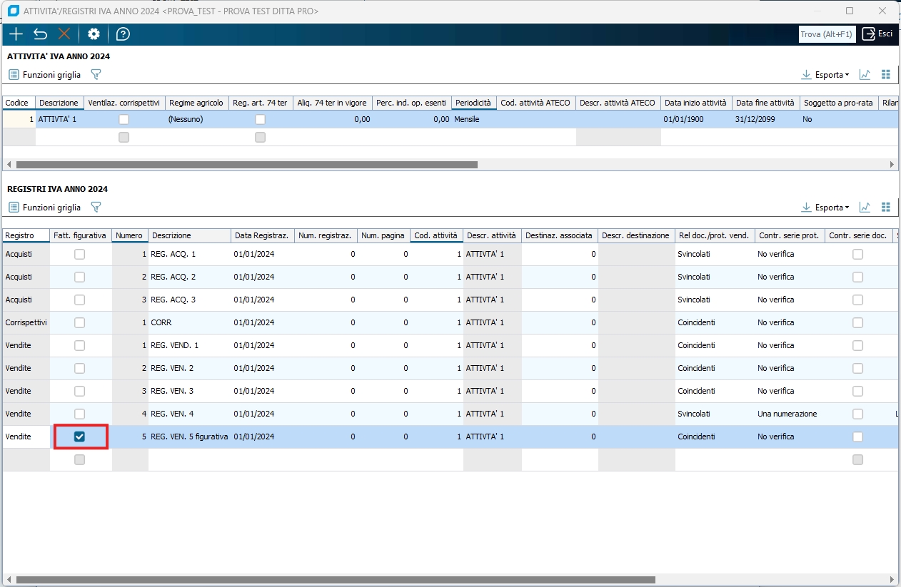 Sia per le fatture acquisto che per le fatture vendite le colonne VP1\1,VP1\2,VP2\1,VP2\2 vanno spuntate