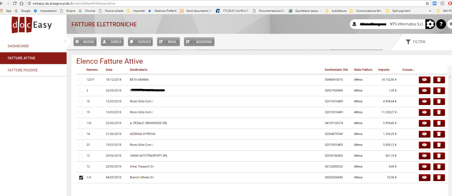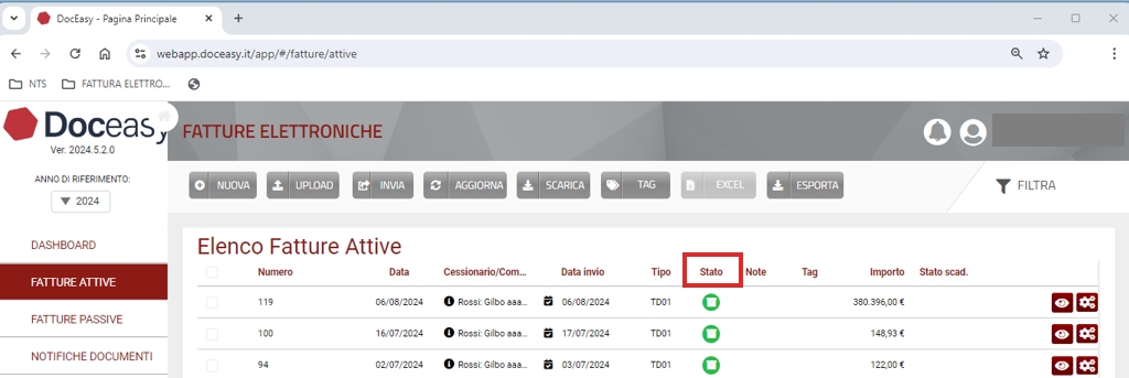Documento di carico gestiti: Fattura Immediata Ricevuta, Nota di Accredito Immediata Ricevuta, Fattura Differita Ricevuta e Nota di Accredito Differita Ricevuta.