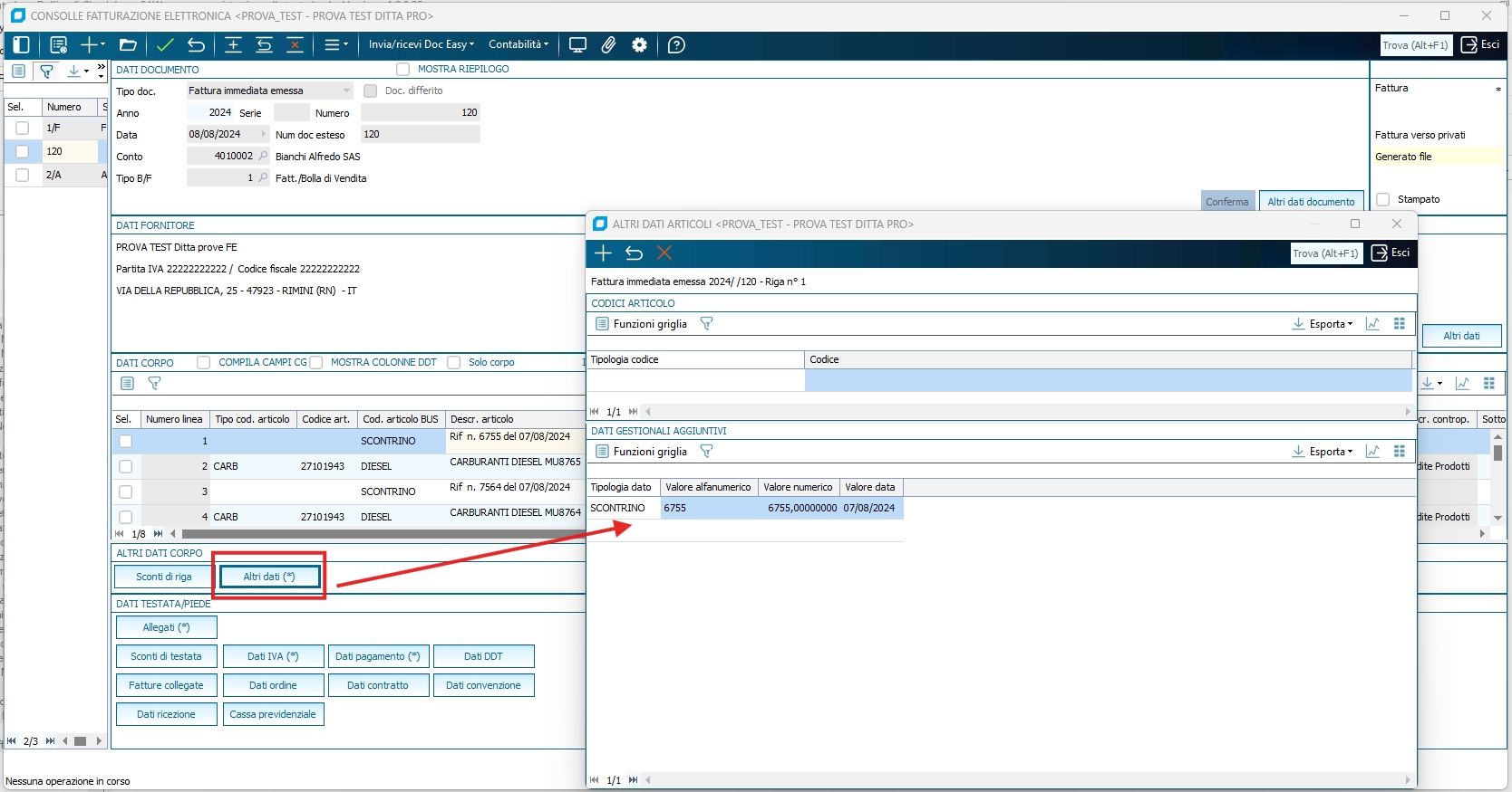Nella fattura elettronica estratta il blocco Altri dati sarà così composto: