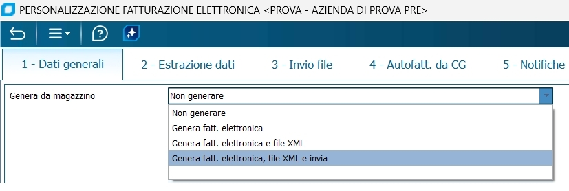 - In estrazione dei documenti emessi da magazzino, i dati dallo storico dell'anagrafica generale (ANASTO) vengono rilevati solo quando il conto intestatario della FE è rilevato dall'intestatario del documento di magazzino o dall'intestatario della registrazione di prima nota o dal conto fatturazione.