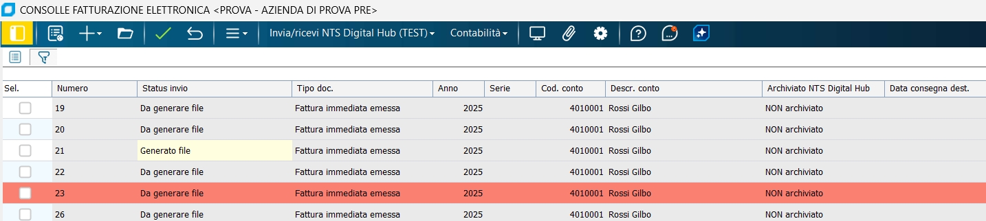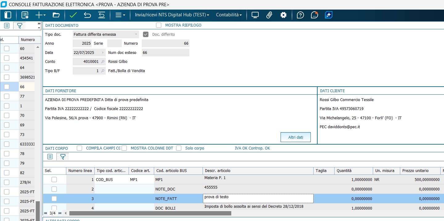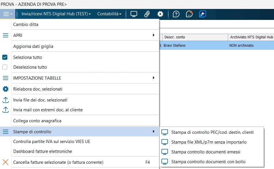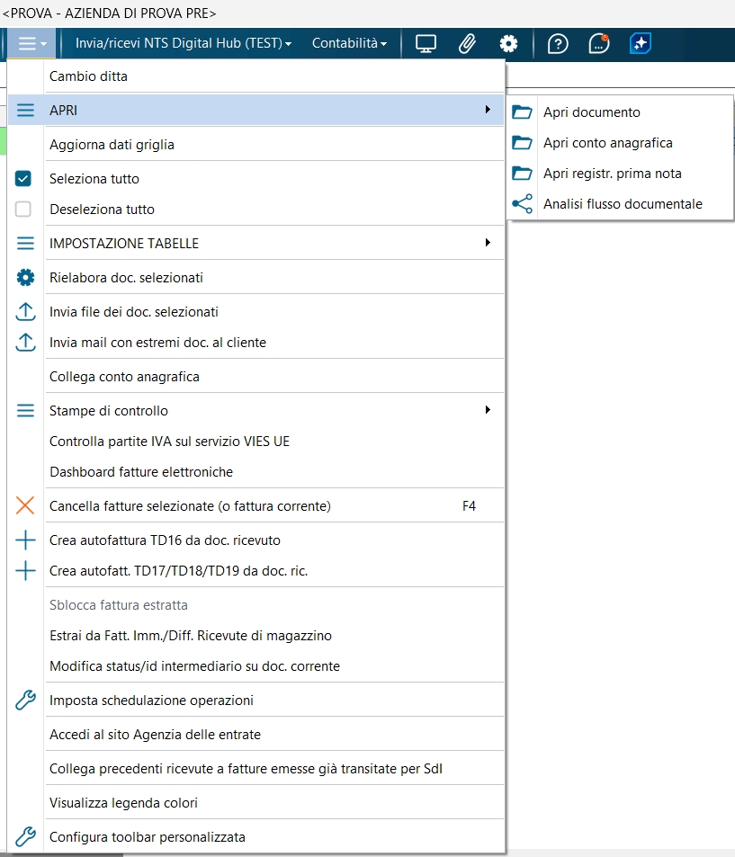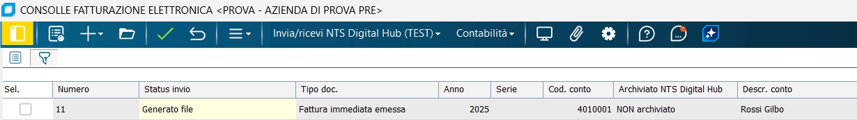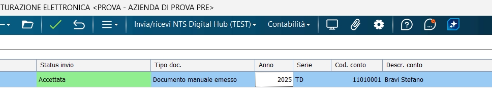 Successivamente se si dispone di un'integrazione con un hub digitale (esempio NDH) è possibile inviare tale fattura a SDI direttamente da Business.