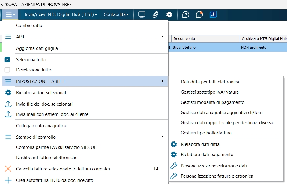 Se non si possiede una versione aggiornata dell'anagrafica cliente, tali dati possono essere gestiti anche dalla consolle fattura elettronica nella sezione "Strumenti - Impostazione tabelle - Gestisci dati anagrafici aggiuntivi cli/forn".