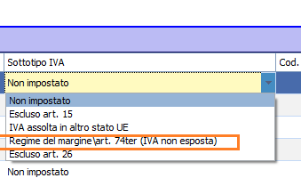 N5 - Regime del margine/IVA non esposta. Si tratta di fatture emesse nell'ambito di regimi IVA per i quali l'IVA non viene esposta in fattura. Gli ambiti in cui ricadono sono le operazioni per le quali si applica il 'Regime del margine' o per le fatture emesse dalle 'Agenzie di viaggio e turismo'. Nel caso di fatture emesse e fatture ricevute in questi regimi va utilizzato un codice IVA in cui nel campo Sottotipo IVA è indicato 'Regime del margine\art 74 ter (IVA non esposta). Per le versioni inferiori a NET 2015 UE7 tale impostazione può essere fatta solo dalla Consolle fattura elettronica\Impostazioni tabelle\Gestisci sottotipo IVA