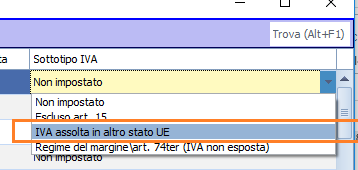 Dalle versioni successive alla CUBE1 SR1 CU1 e NET "2015" UE7 CU1 è presente nell'apposito campo nella tabella codici IVA – campo Sottotipo IVA il valore IVA assolta in altro stato UE