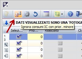 Logica Elaborativa In un primo passaggio viene eseguita una elaborazione senza considerare i consumi di materiale che potrebbero esserci negli impegni con numero di priorità più basso, elaborazione regolata da una voce di menu deselezionata 'ignora consumi IC con priorità minore':