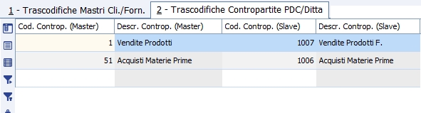 Trascodifiche contropartite PDC/DITTA Se i codici contropartite tra le ditta master e la slave sono diversi è necessario impostare la trascodifica. E'necessario quando le due ditte