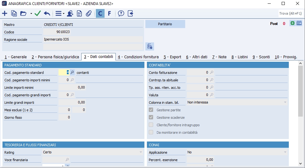 Trascodifiche mastri clienti\fornitori Va impostata la trascodifica tra il mastro della ditta master e il mastro della ditta slave