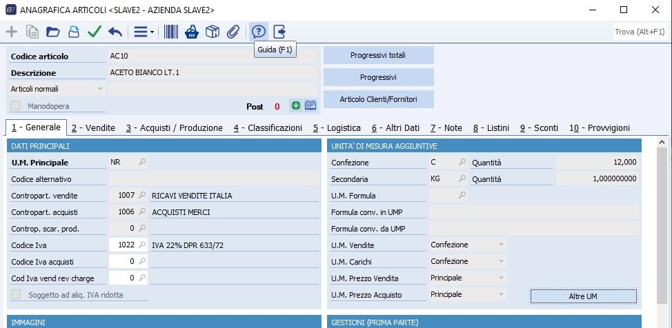 · Al primo lancio sulla ditta SLAVE le tabelle devono essere vuote eccetto il fornitore Ns. Stabilimento