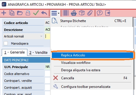 · Se sono presenti articoli a fasi sono trasferite le fasi ma senza il ciclo\lavorazione