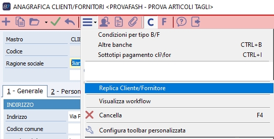 Nel caso sia necessario inviare immediatamente e veloce l'anagrafica di un fornitore o di un articolo, è disponibile sulla ditta MASTER nel menù strumenti delle relative anagrafiche