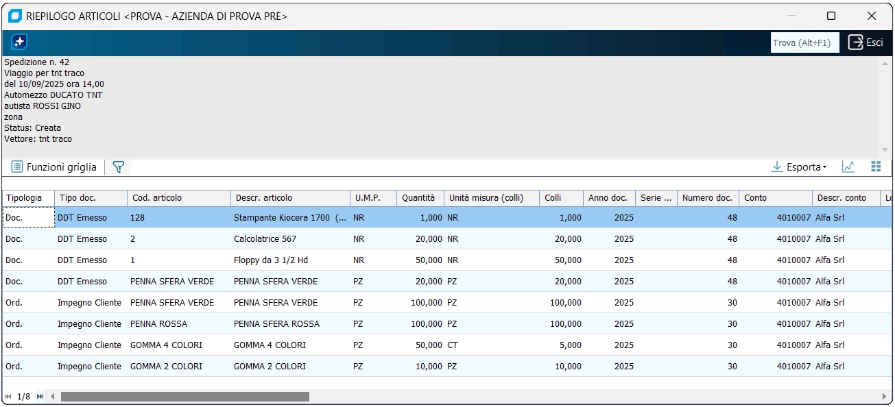 La prima riga "Doc" contera i valori e riferimenti dei 2 pezzi evasi mentre la seconda conterra i valori e riferimenti delle 8 quantità ancora da evadere (anche se prenotati).