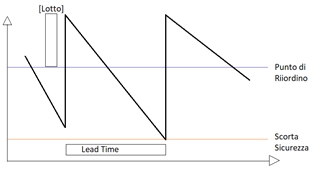La scorta di sicurezza potrà essere considerata anche per gli articoli con politiche a fabbisogno, per questi articoli il punto di riordino è zero, pertanto il loro riordino scatterà quando il disponibile produttivo sarà inferiore a zero.
