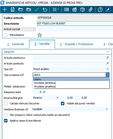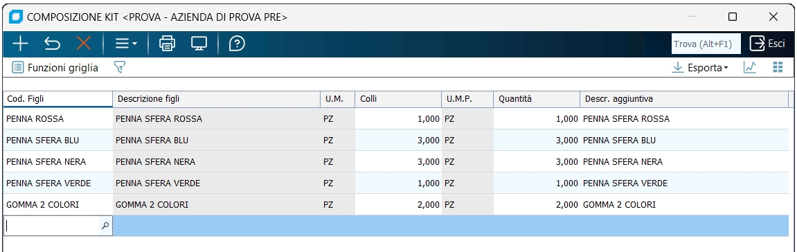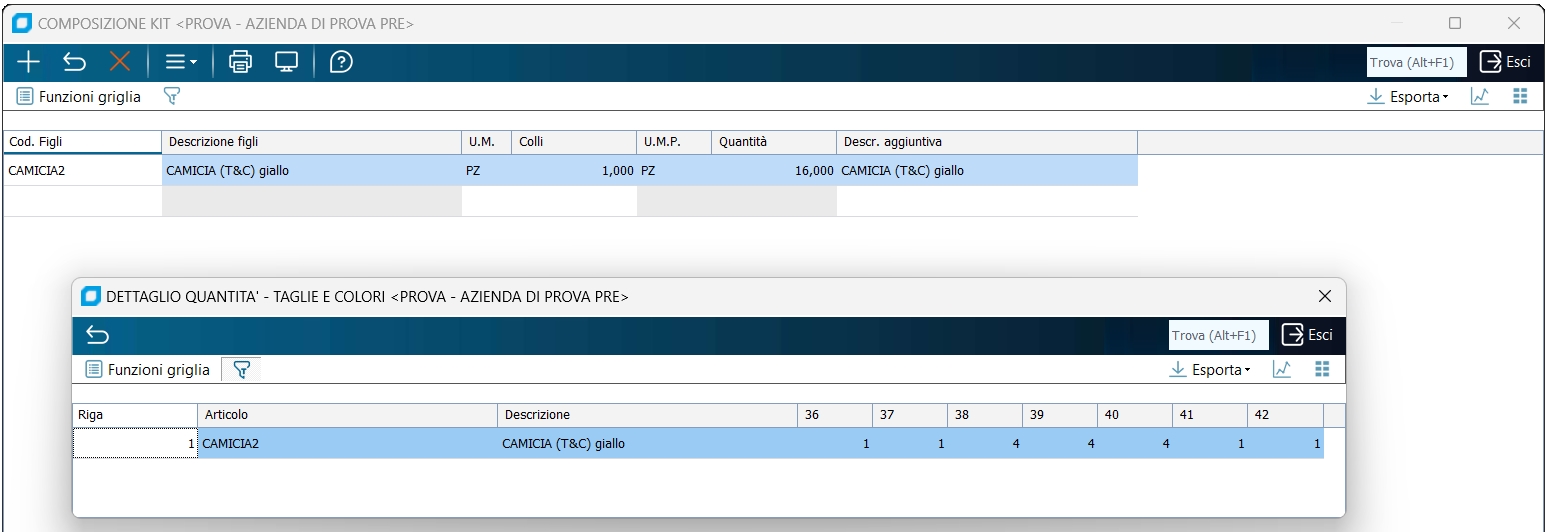 Dalla versione SR7 è possibile indicare, in composizione Kit, anche gli articoli gestiti a Taglia e Colore.