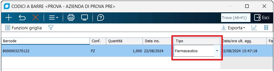 Tipologia Abilitato in inserimento di nuovo articolo ed in presenza di almeno due diverse tipologie nella relativa tabella, il campo è gestito dalla lista a discesa che appare a fianco della seconda riga di descrizione articolo.