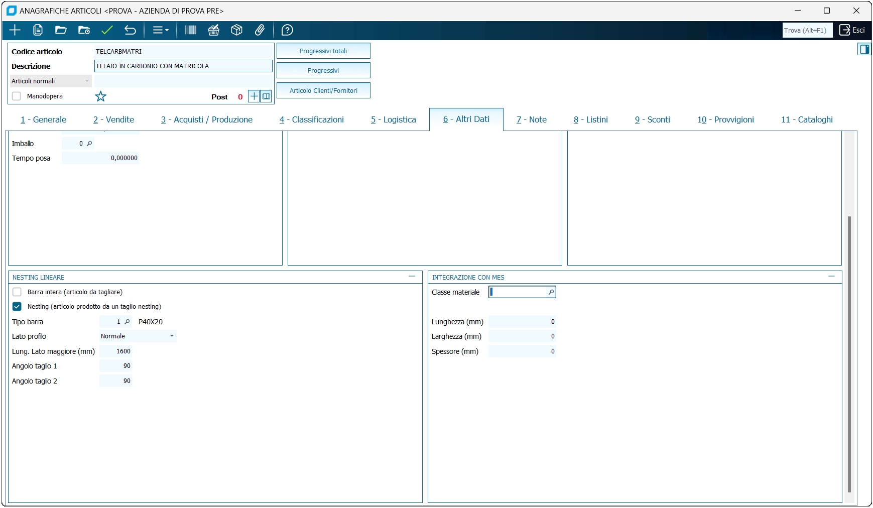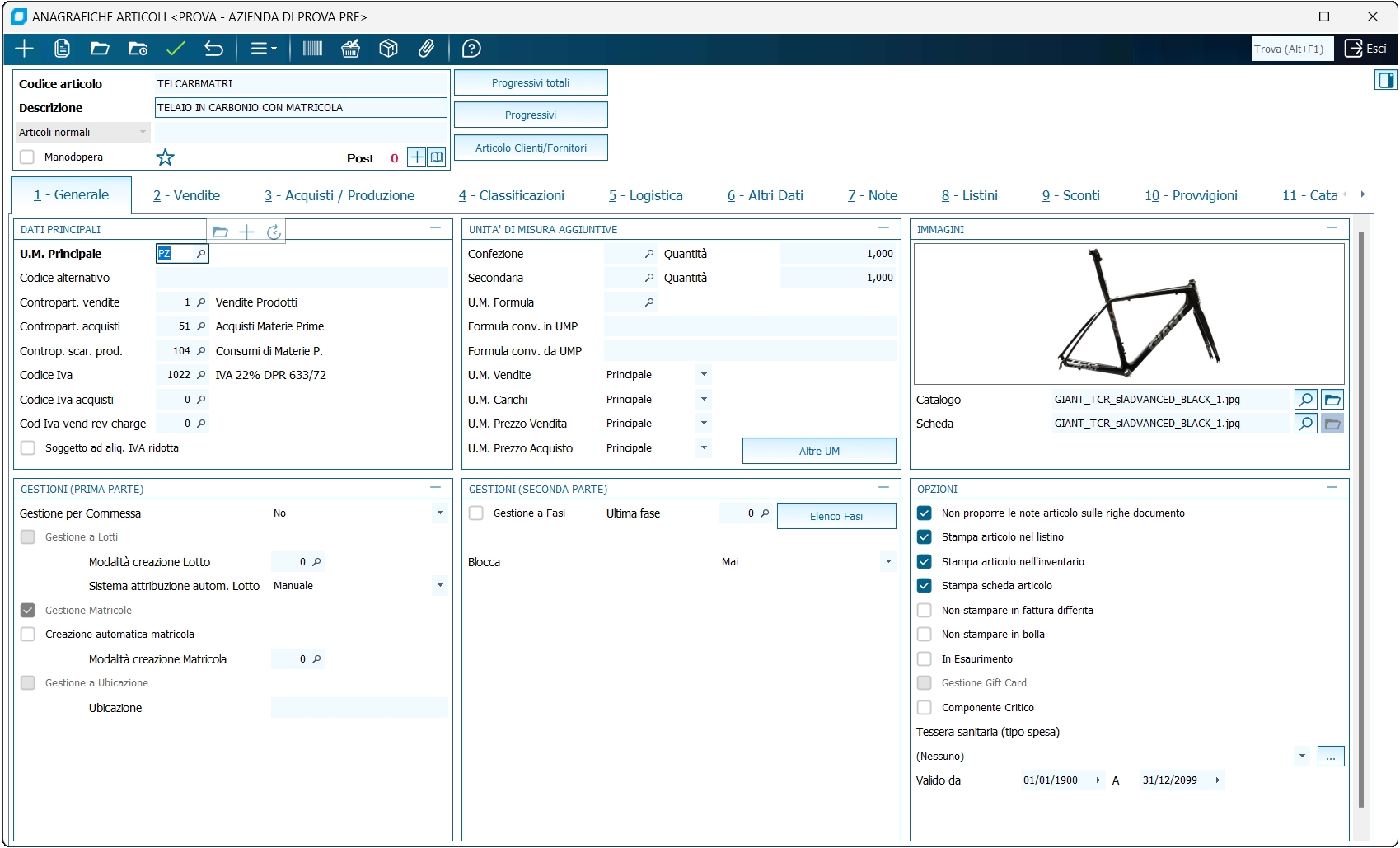 Es. Indicando ART nell'opzione con GeneraCodiceLungExt = 3, verrà creato il codice ART001.