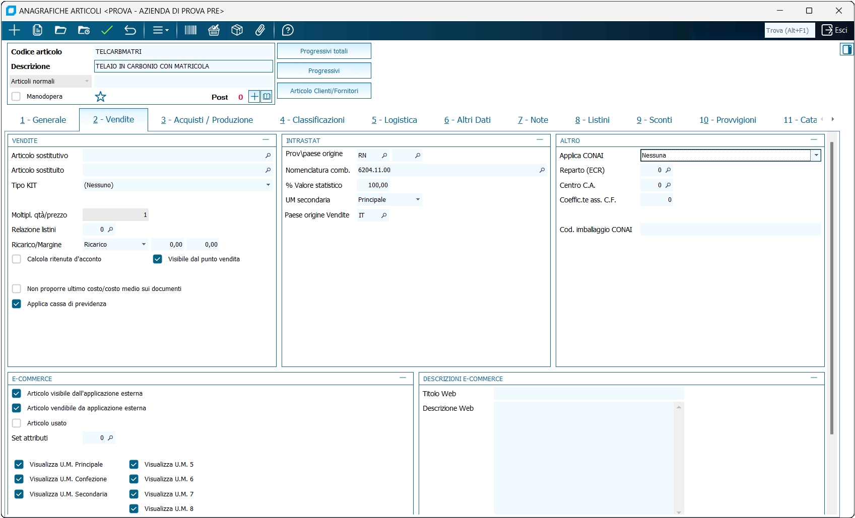 U.M. vendite Imposta l'unità di misura da proporre nel momento in cui l'articolo viene venduto.
