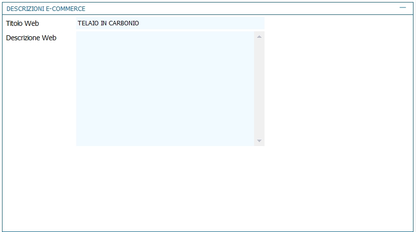 La descrizione è quella principale, estesa dell'articolo, che va riportata nella maggioranza dei tabulati e delle stampe che riguardano il magazzino, nonché nelle bolle e fatture emesse.