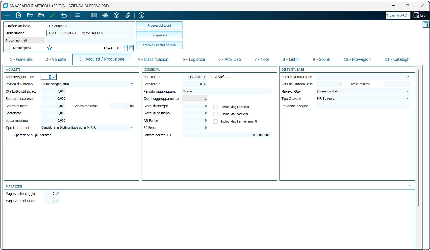 Allo scopo è stato visualizzato e reso editabile il campo Scorta di Sicurezza in ANAGRAFICA ARTICOLI (artico.ar_scosic) e ARTICOLI PER MAGAZZINO (artmaga.am_scosic) per permettere di impostare manualmente la scorta di sicurezza a livello di articolo e di articolo/magazzino.
