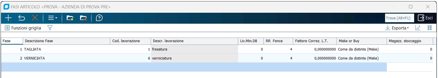 NB: un articolo Conai non può avere come figlio un articolo gestito a fasi.