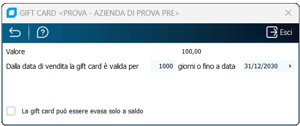 La gift card può essere evasa solo a saldo Utilizzata solo se l'importo del documento non è inferiore al valore della card.