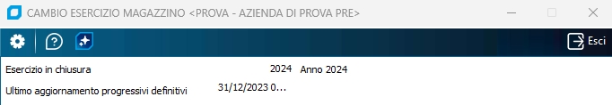 Questo programma permette di definire l'esercizio trascorso chiuso dal punto di vista della contab. di magazzino. Per eseguire questa elaborazione occorre aver già eseguito la stampa delle schede di movimentazione degli articoli, se necessarie dal punto di vista fiscale, e l'aggiornamento progressivi articoli fino alla data di chiusura dell'esercizio, nonché la stampa dell'inventario a data ultimo aggiornamento con l'opzione Inventario Finale. Supponiamo di dover chiudere l'esercizio (anno solare) 2024, il programma: - Trasferire, se mancanti, i dati relativi alle giacenze al 1/1/2024 (=31/12/2023) nell'archivio dei dati Lifo; - Trasferire, i dati relativi alle giacenze al 1/1/2025 (=31/12/2024) nell'archivio dei dati Lifo; - Riportare a nuovo le esistenze al 31/12/2024 nei progressivi definitivi articoli come giacenza al 1/1/2025 e azzerare tutti gli altri campi. - Ricostruire automaticamente i progressivi correnti articoli fino all'ultimo movimento inserito nell'esercizio 2025.