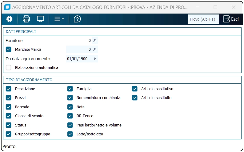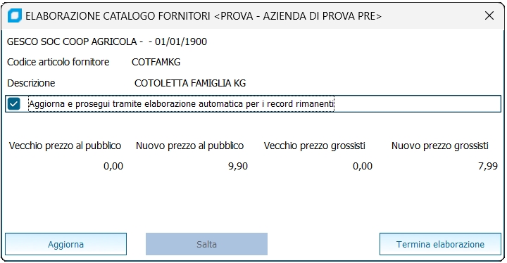 Aggiornamento Articolo da Catalogo Fornitore | |||