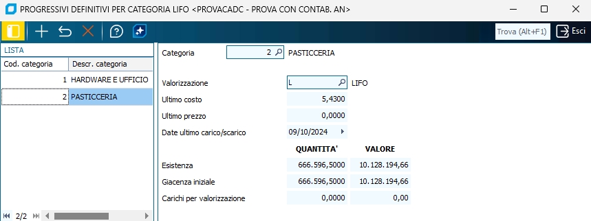 Questo programma é attivo se è spuntato il flag Gestione categoria LIFO in Anagrafica ditta\Dati aggiuntivi ditta