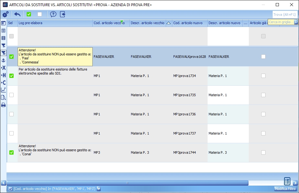 Se l'articolo da sostituire ha una distinta base associata allora anche il sostitutivo deve essere associato a una distinta base .
