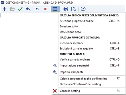 Calcola proposte di taglio per il nesting questa funzione esegue l'algoritmo di calcolo del taglio nesting (è possibile eseguire l'operazione più volte)