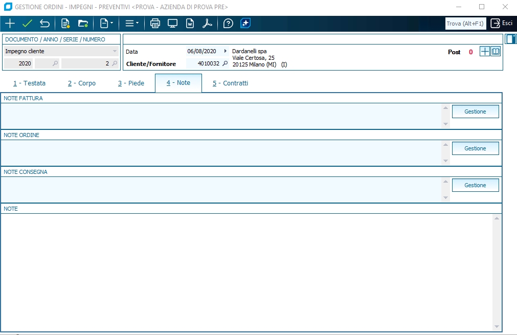 CTRL+Z (Note riga) quando si è su una riga nel corpo del documento apre una schermata che visualizza/modifica il campo Note di riga.
