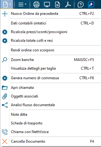 Rendi ordine con/senza scorporo Questa funzione, visualizzata solo su ordini aperti in modifica, consente la variazione dello scorporo sull'ordine. L'operazione non è possibile: