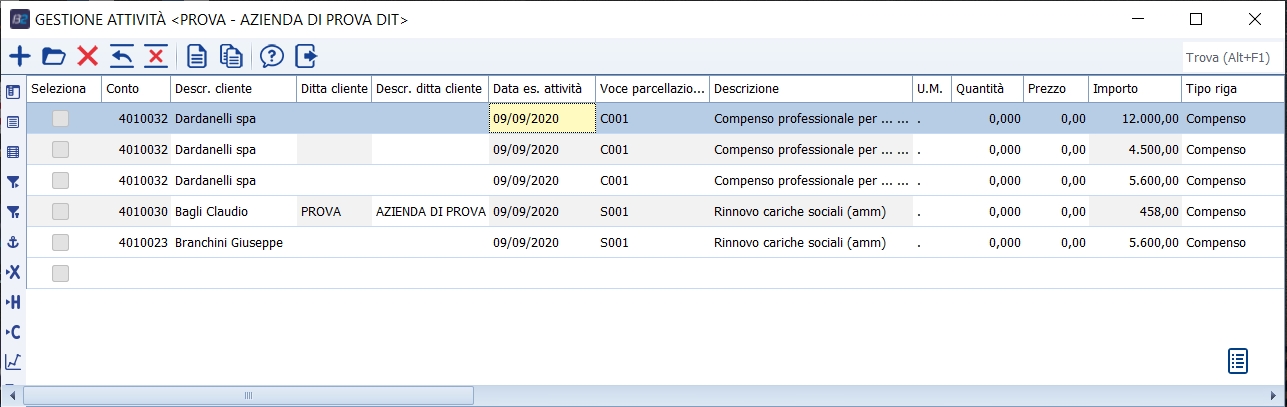 Con questo programma si inseriscono, modificano o cancellano le voci di attività da eseguire per conto del cliente che saranno utilizzate per comporre la fattura/notula.