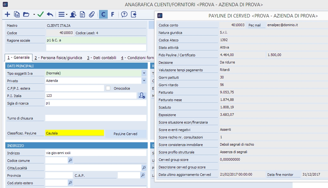 Attraverso il modulo di Integrazione con PayLine Cerved / Itrade Cribis è possibile: