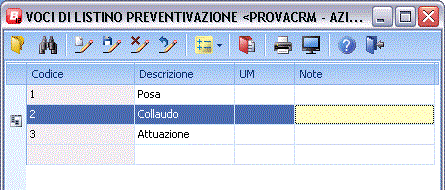 Voci Listino Preventivazione