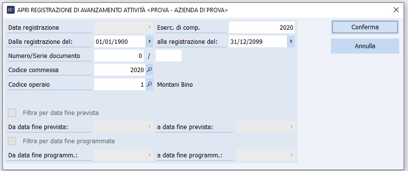 Moduli richiesti: Project Management Opzioni programma: vai alle opzioni