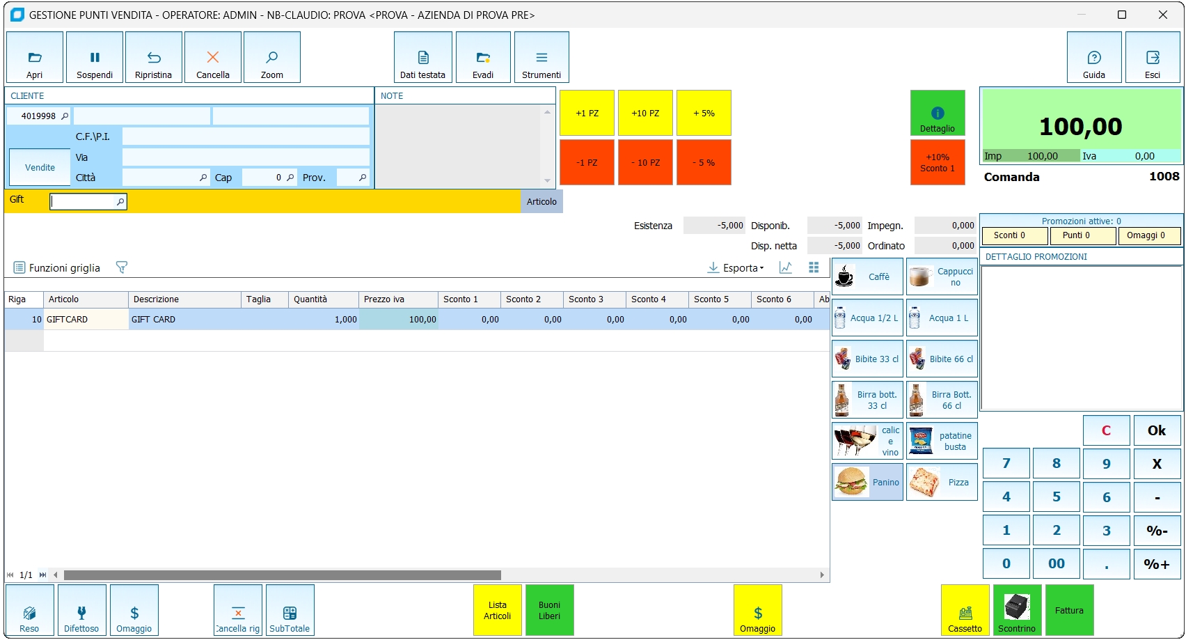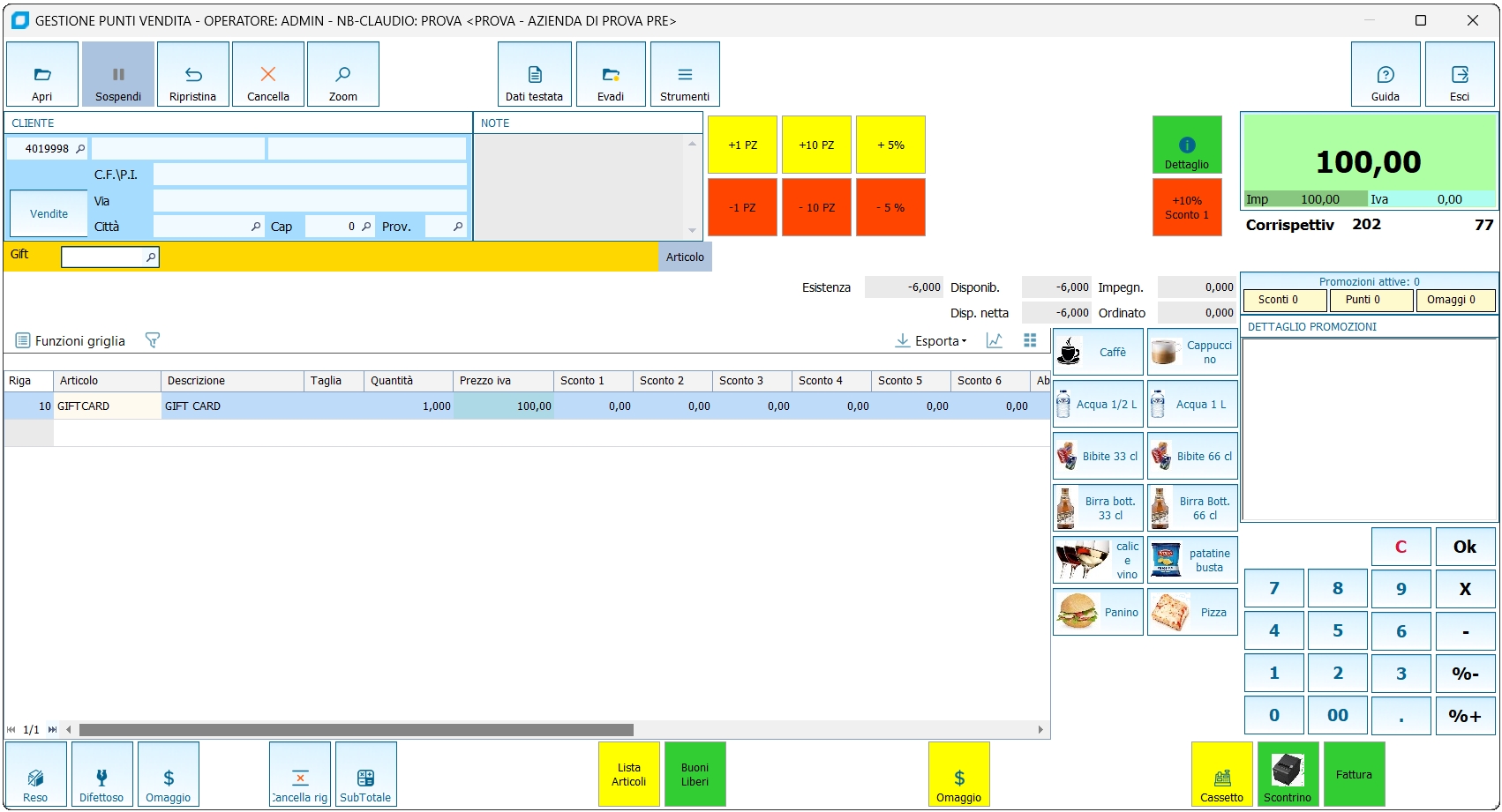 GESTIONE GIFT CARD Dall'apposito comando presente nella schermata di vendita (Gift Card) indicare il codice a barre corrispondente alla card venduta