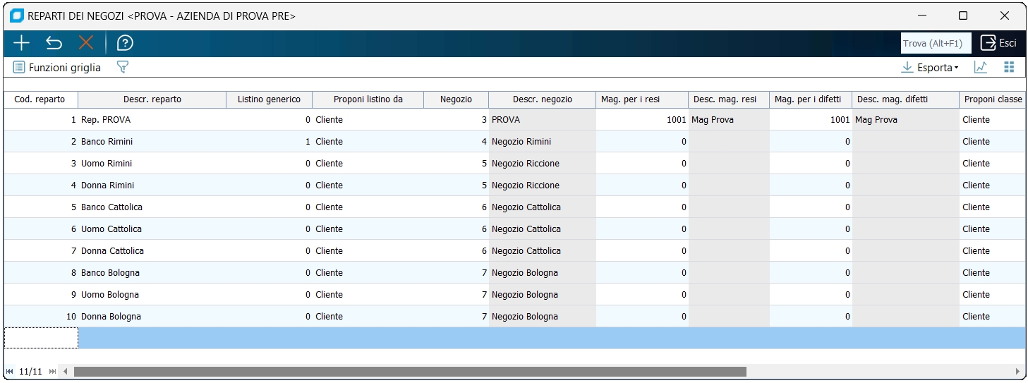 Da questo programma č possibile configurare i reparti dei singoli negozi, intesi come reparti fisici e non degli articoli.