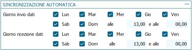 In questa sezione è possibile impostare i giorni e gli orari per la sincronizzazione automatica dei dati,